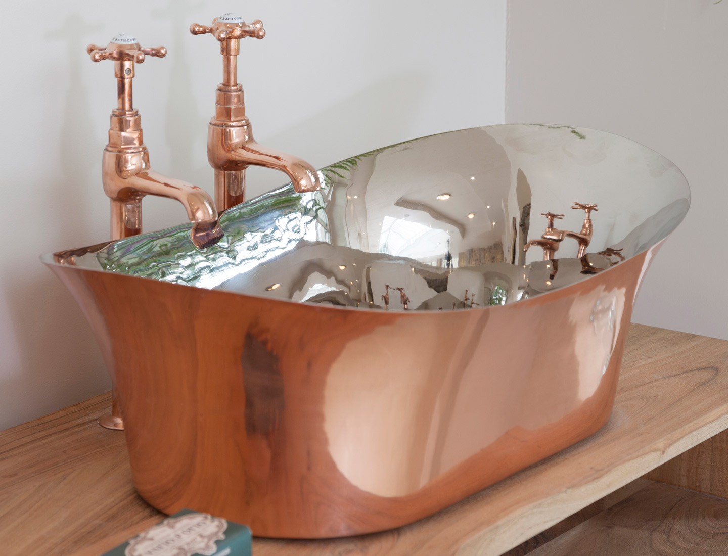 Image shown: Copper Bateau Basin With Nickel Interior Setting