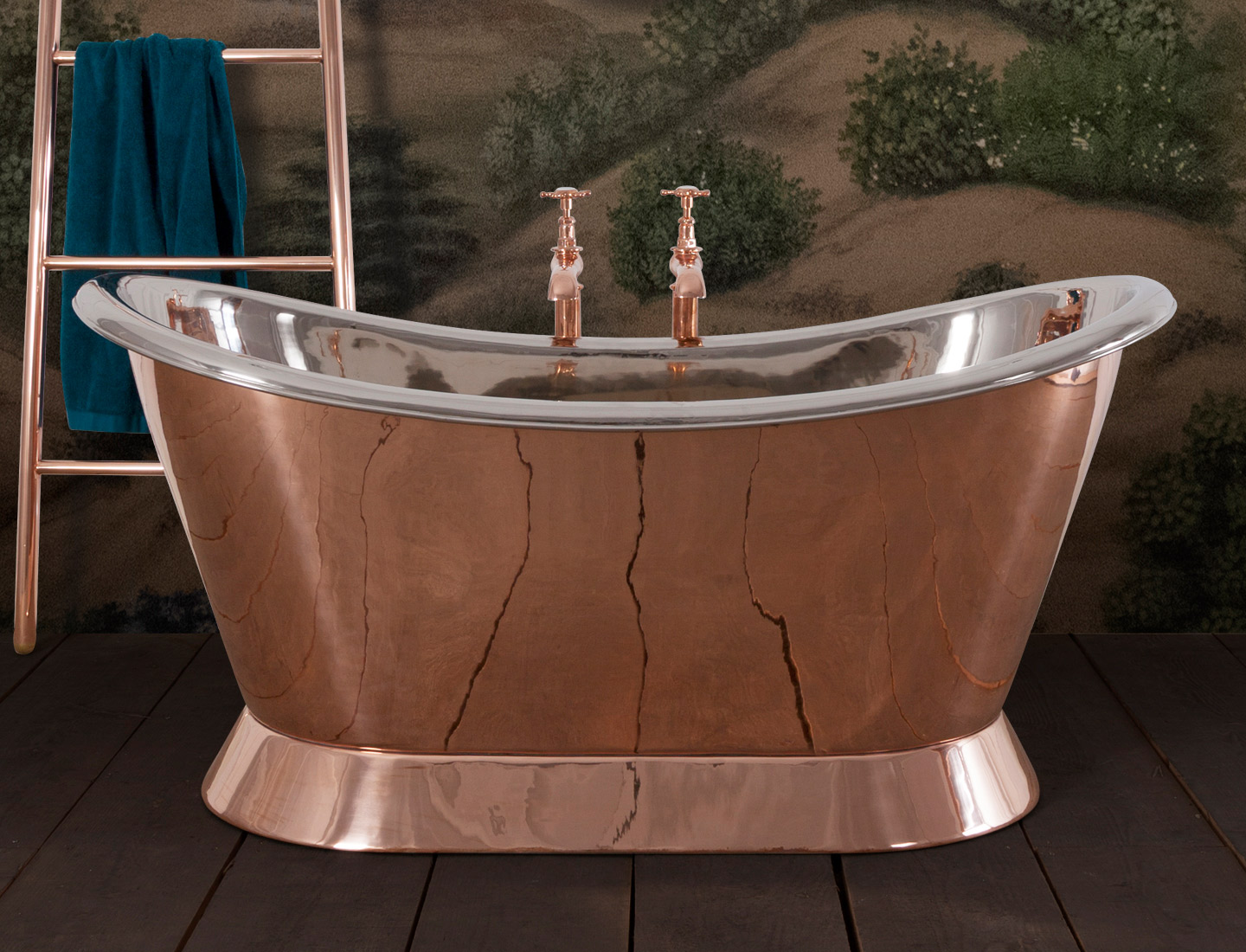 Copper Bateau with nickel interior 1500mm - Hurlingham Bath (A smaller alternative to our standard copper bateau)