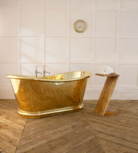 - The striking design of a brass bath makes it a perfect centrepiece in any bathroom.